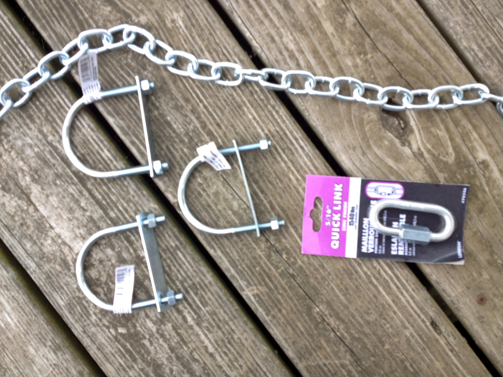 Three pieces of one inch link zinc coated chain 4 1/2 ft long.
