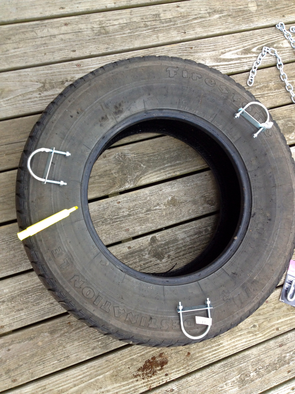 1. Mark the tire using the U-bolts, keeping in mind you want the tire divided into thirds by the three U-bolts.