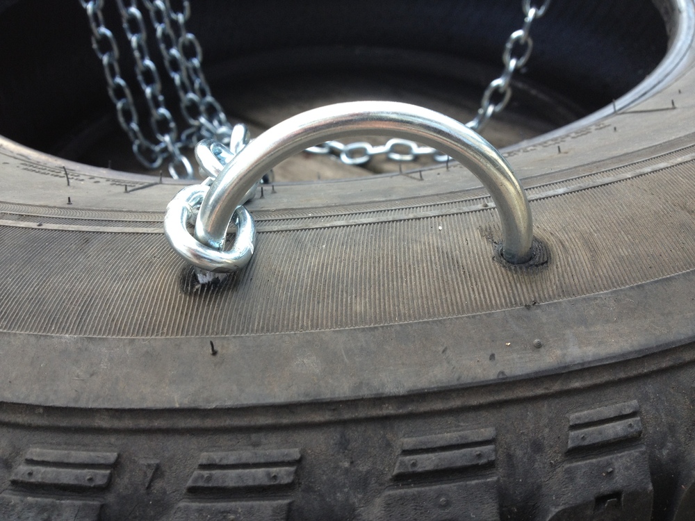 Hint: When you are drilling holes for the U-bolt, flip the tire over and drill 2 or 3 holes randomly for drainage so your tire swing doesn’t collect water.