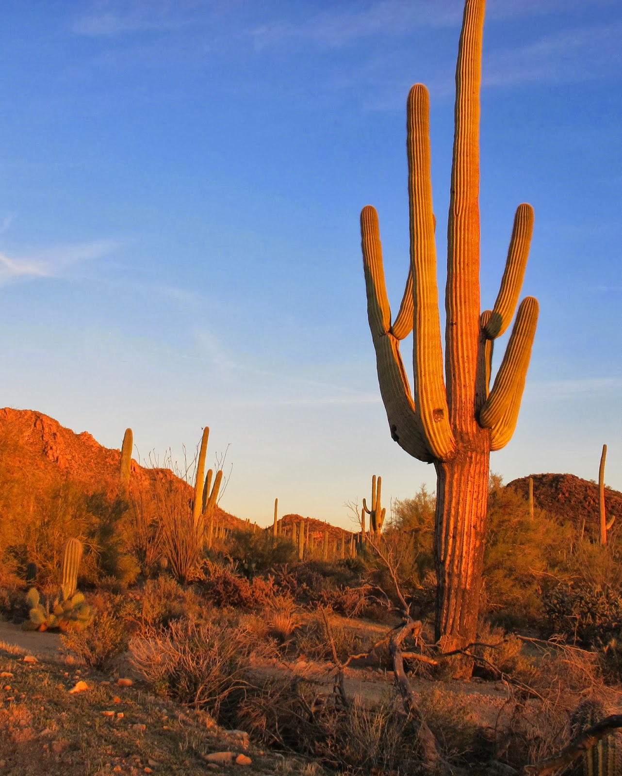 Each time I’ve seen Saguaro cacti in Arizona, I’m reminded of soldiers standing at attention on hillsides or reaching toward the sky to worship the sun. Some Native American tribes may believe the saguaros are their dead ancestors.