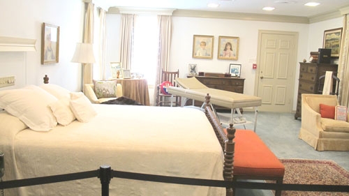 LBJ’s bedroom has a massage table for his back problems, which is also the place he had a massive heart attack and died in 1973. Because he used to have visitors in the master bedroom, Lady Bird got tired of pulling the covers up over her head, so they built separate rooms. Their clothing still fills the closets. (Pamela O’Meara/Review)
