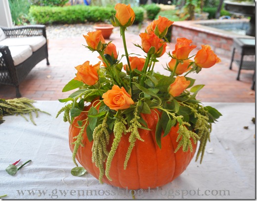 Nothing creates the perfect atmosphere for entertaining like a beautiful centerpiece. Here is a great post on a DIY pumpkin centerpiece by GwenMossBlog.Blogspot.com. For the original post click HERE.