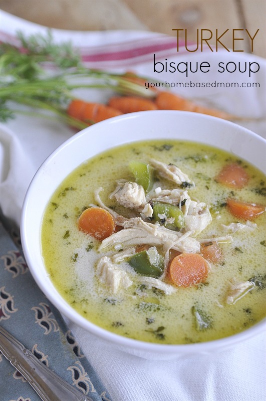 It’s cold outside and theres lots of turkey left over. Let’s make some soup. Check out this turkey bisque soup recipe by YourHomeBasedMom.com. For the original post and recipe click HERE.