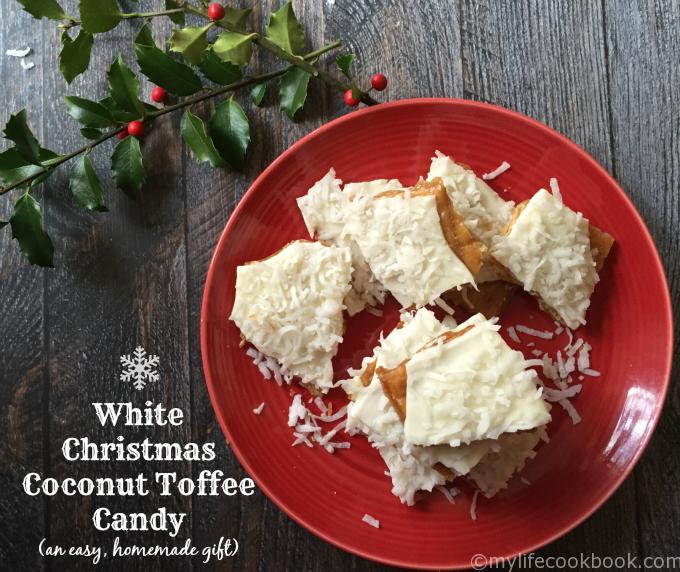 This coconut toffee candy is so easy to make and tastes delicious! It’s a great homemade gift for teachers, neighbors and love ones.