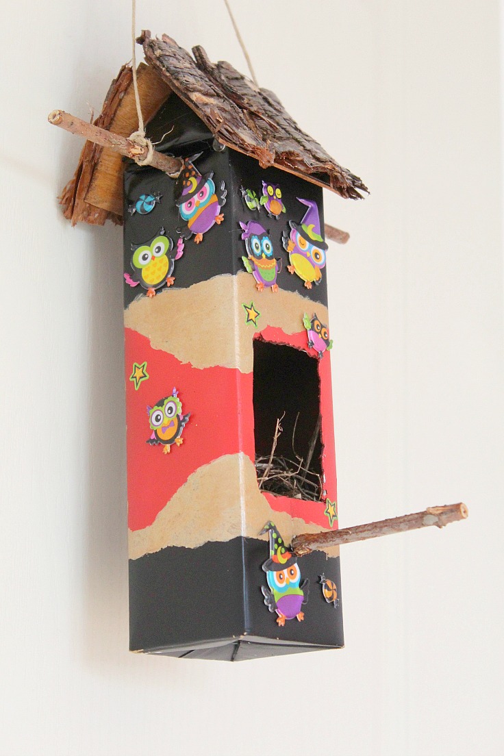 Do you have a cute flock of birds in your back yard? Give them something more to chirp about with this Easy DIY Birdhouse that you can make out of an used milk carton!