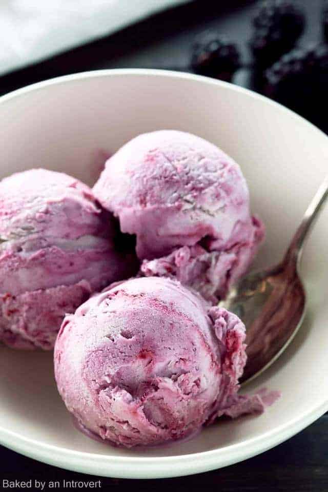 I have been in the mood for ice cream every day since summer officially hit. It’s so hot and humid here, the only way to cool down is with smooth, creamy ice cream that’s swirled with fresh blackberry jam.