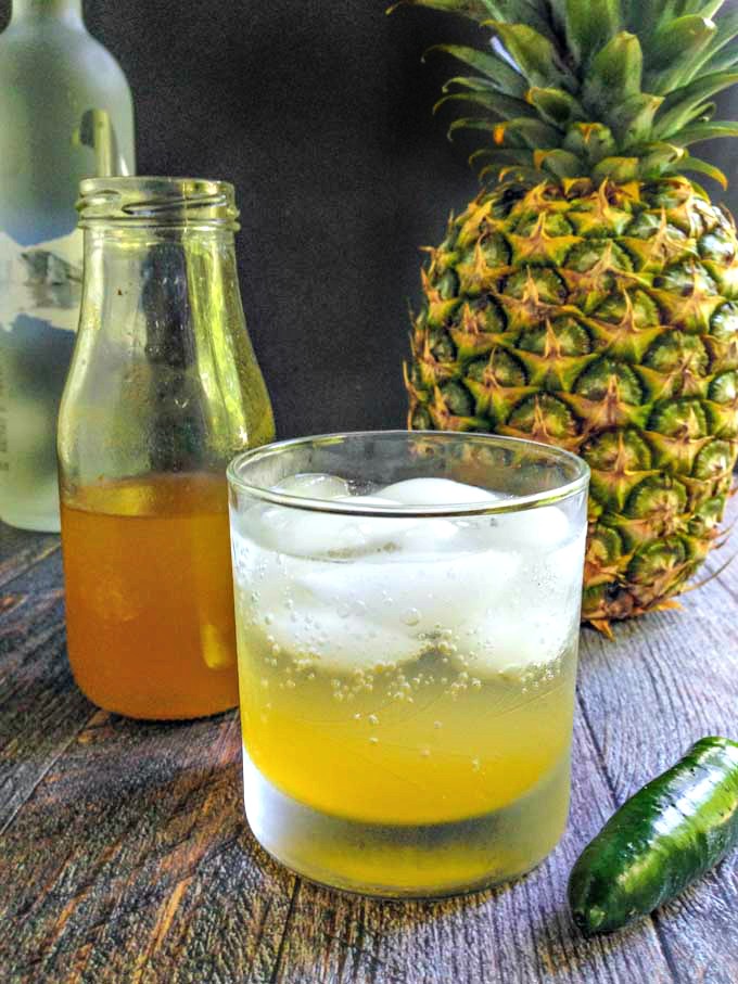 This pineapple jalapeño shrub cocktail has the sweetness of pineapple, the heat of jalapeños and the tang of vinegar. Great with seltzer or vodka for a refreshing summer drink.
