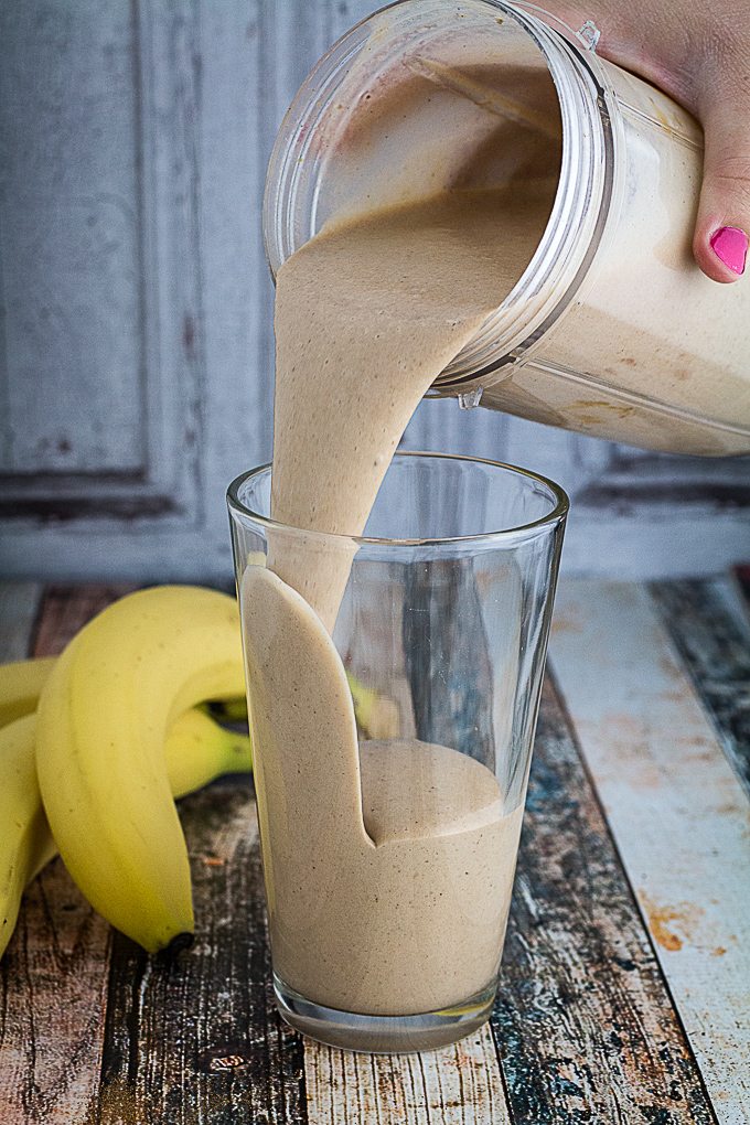 Chocolate Peanut Butter Protein Shake is smooth and indulgent. Creamy peanut butter, sweet honey, bananas, and chocolate protein powder blended with cinnamon and vanilla will make this your new favorite breakfast!