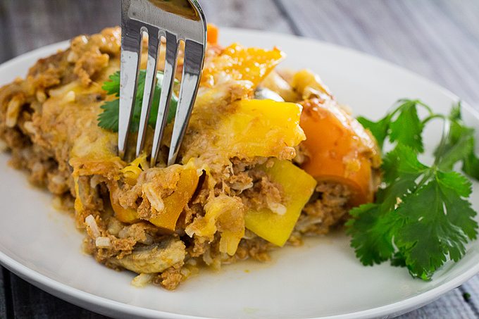 Stuffed Pepper Casserole, however, is a completely different story. It’s incredibly quick and easy to throw together, and only has one dish to clean up afterwards. That’s right, no need to worry about the multiple pans that usually comes with stuffed peppers. No browning of the meat (unless you really, really want to), no cooking of the rice. Just one and done!