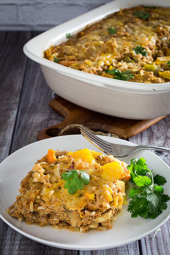 Cheesy Stuffed Pepper Casserole is a really quick and easy version of one of my favorite dishes. It’s loaded with gooey cheese, fresh bell peppers, turkey, and spices. All of the flavor of stuffed peppers in one easy to clean casserole dish!