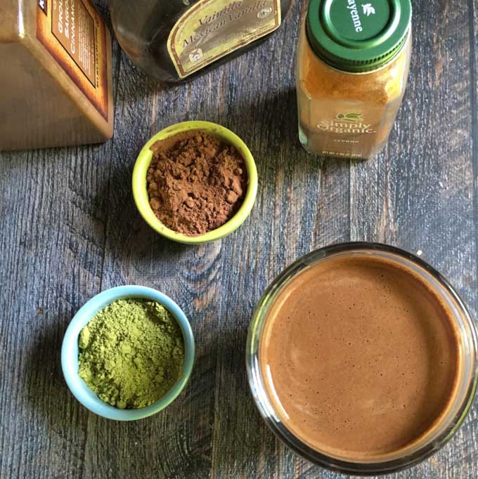 That’s where this recipe comes in. It’s a cross between a bulletproof matcha drink and a Mexican hot chocolate. It’s simple to make, low carb and I just love it.