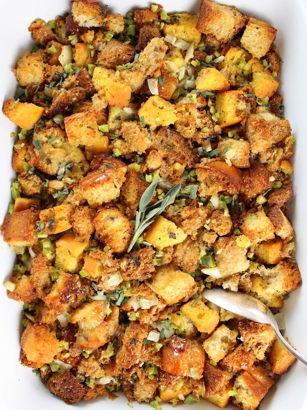 Classic Turkey Stuffing with homemade cornbread, Asiago foccacia, & artisan whole wheat.
