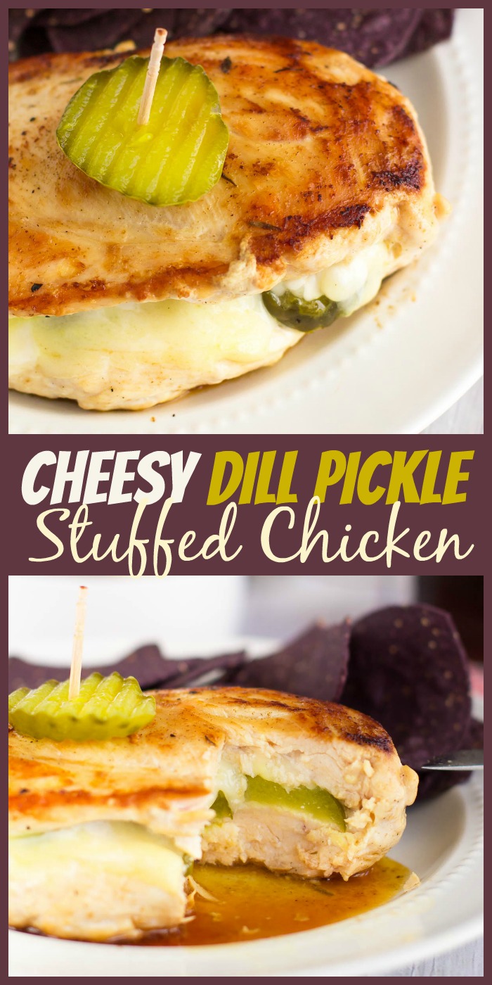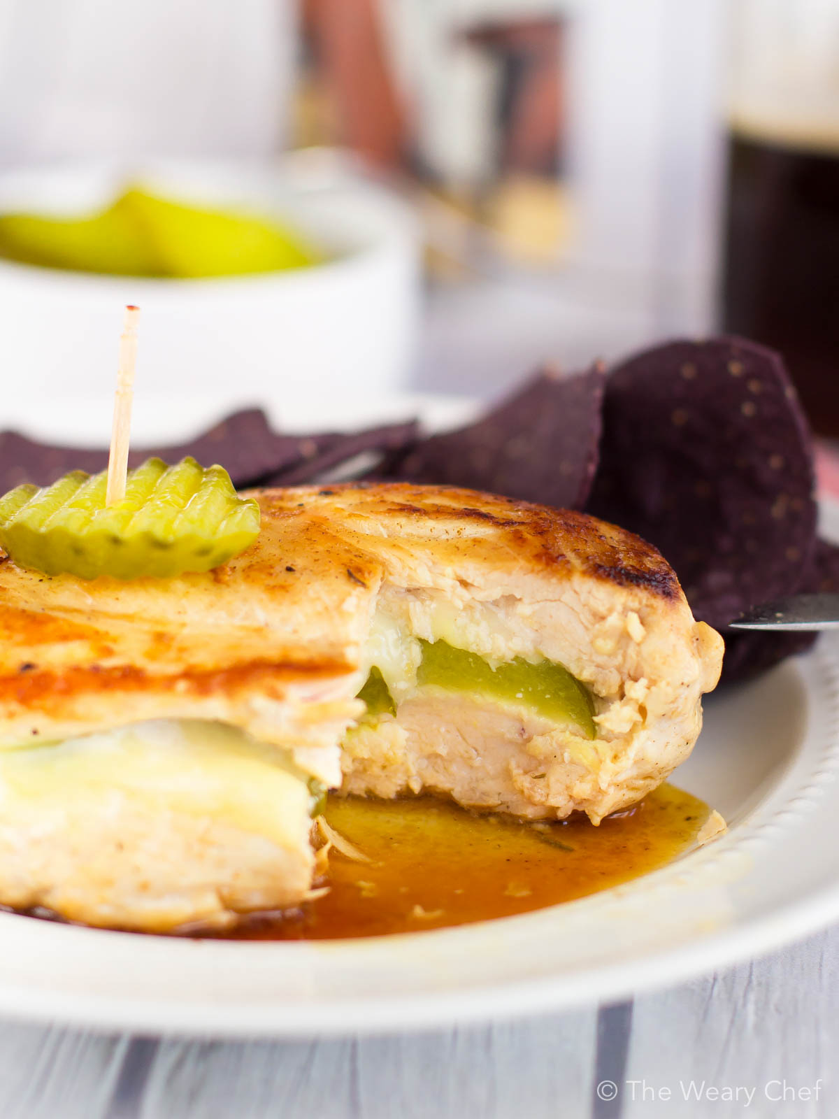 Get the full recipe of these Cheesy Pickle Stuffed Chicken Breasts at The Weary Chef!
