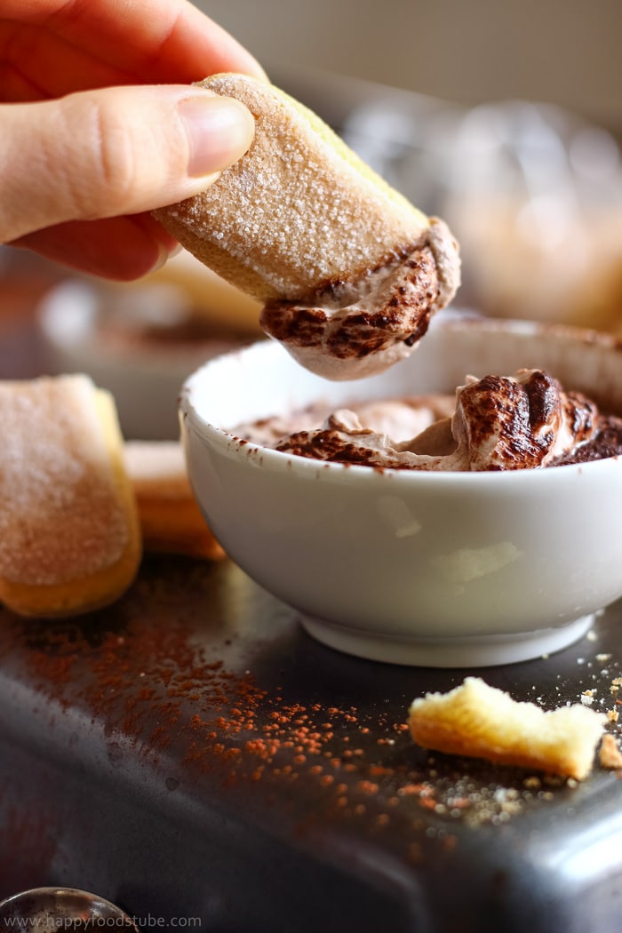Easy 5-minute tiramisu dessert dip. This rich & creamy dip made with mascarpone, cream, cocoa & coffee tastes like real tiramisu! Best dessert dip ever!