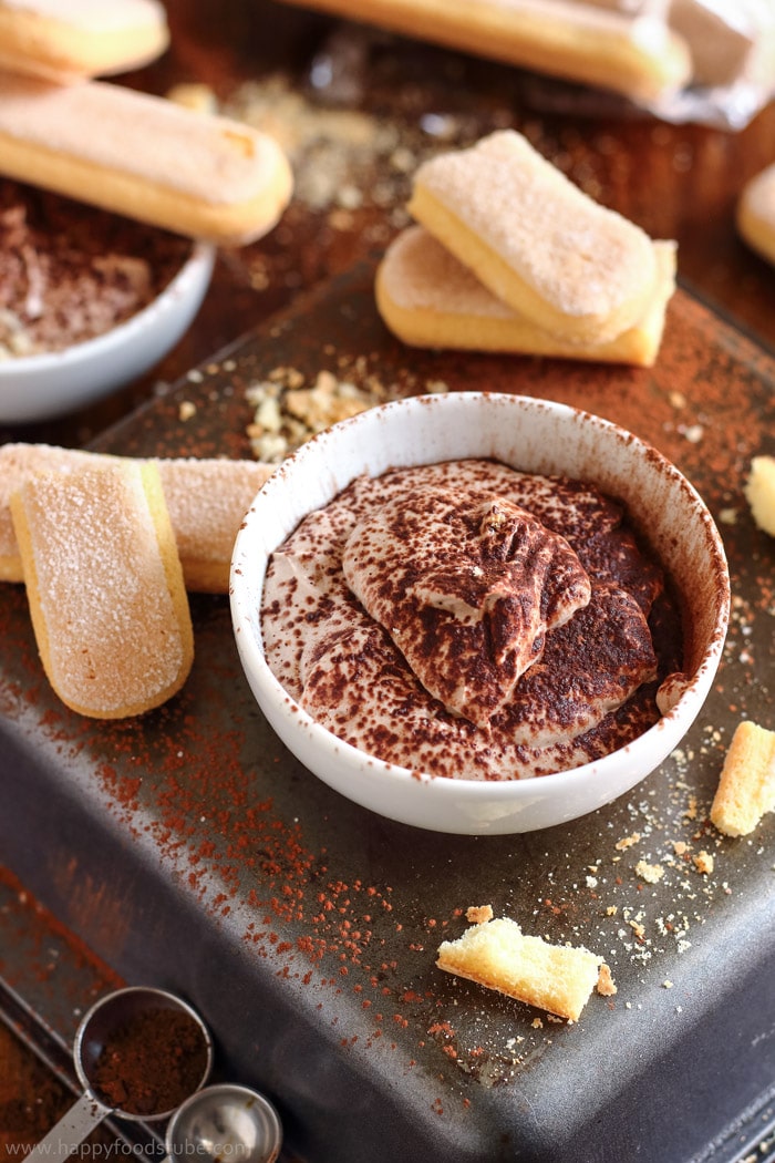 Anyways, no matter how long it takes it tastes like the real deal. Like the Italian tiramisu! Just this is in a form of a dip. The only difference here is that I skipped the assembling part because why not, right? This way we cut down the prep time and didn’t go into the “trouble” of dipping ladyfingers in coffee. Plus the layering was also omitted.