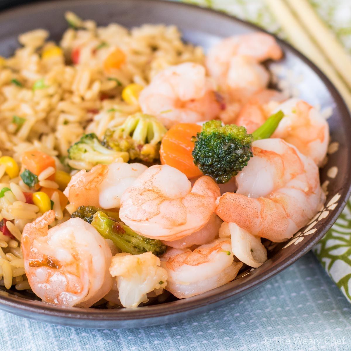 Get the full Sweet Chili Shrimp Sheet Pan Supper recipe at The Weary Chef!