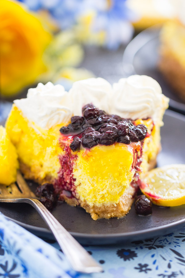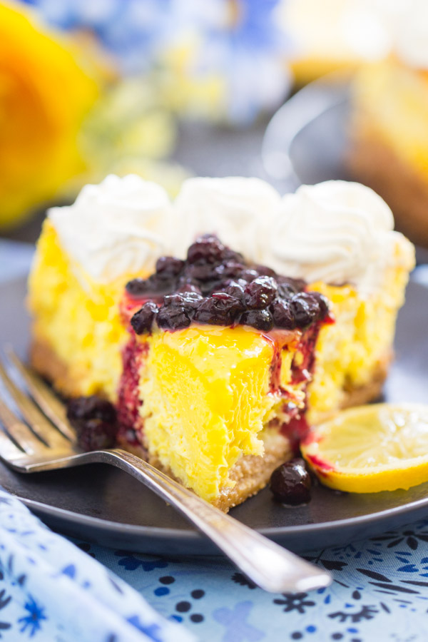 This Lemon Blueberry Cheesecake is my latest favorite cheesecake. I almost dare to say that it’s my favorite cheesecake of all time, but I’ve got a lot of good ones, so it would probably be too bold to say it’s my #1. However, it’s damn close to that #1 spot.