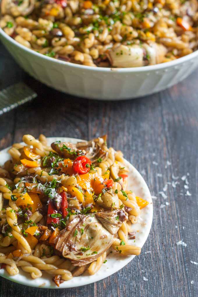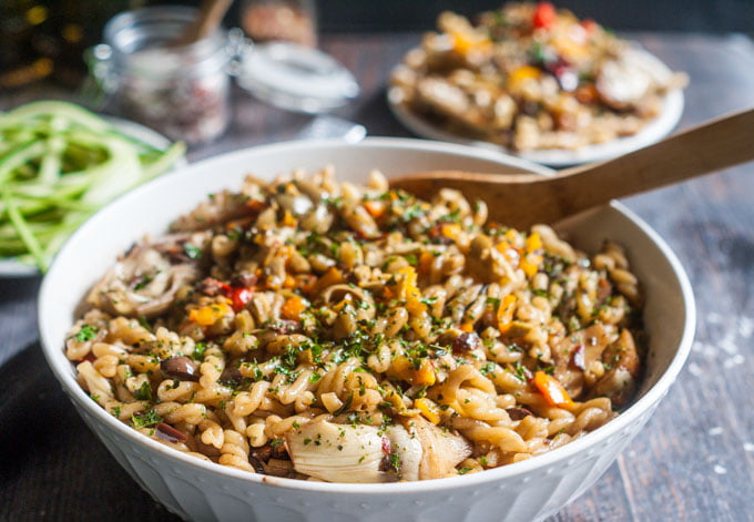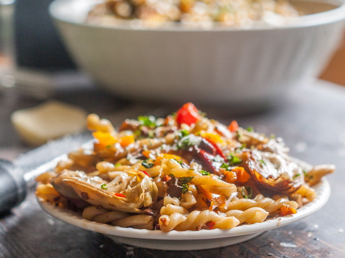 This artichoke & olives balsamic pasta is a quick an easy vegetarian meal with big taste! Only a few ingredients needed and you have a healthy, tasty pasta dinner in 20 minutes.