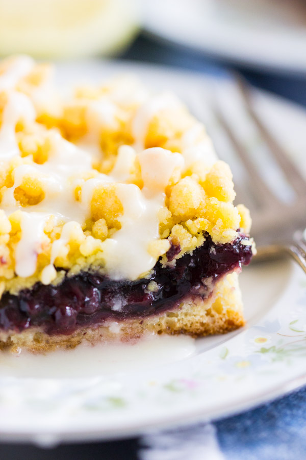 Soft, fluffy, cake-like lemon bars, topped with blueberry pie filling, a smattering of buttery, melt-in-your-mouth lemon crumble, and a generous drizzle of fresh lemon glaze. Equally perfect for dessert or brunch, these Lemon Blueberry Crumb Bars are an unforgettable treat!