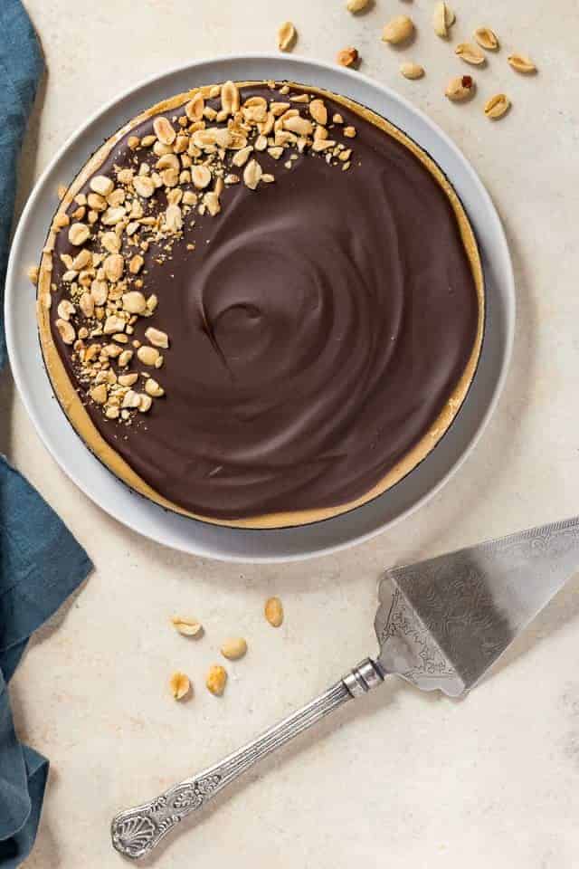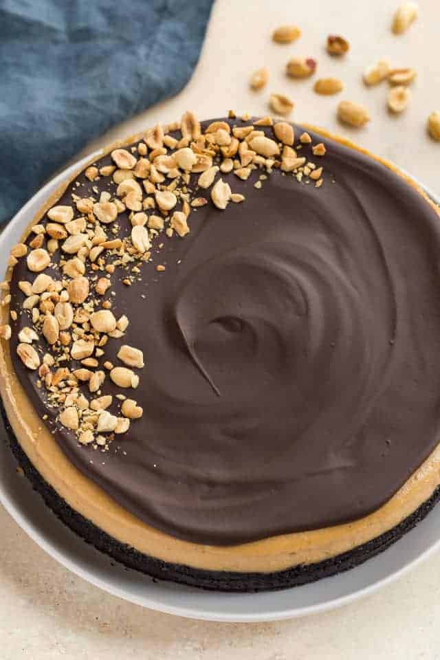 To see the full recipe and instructions click HERE. - Chocolate Peanut Butter Cheesecake.
