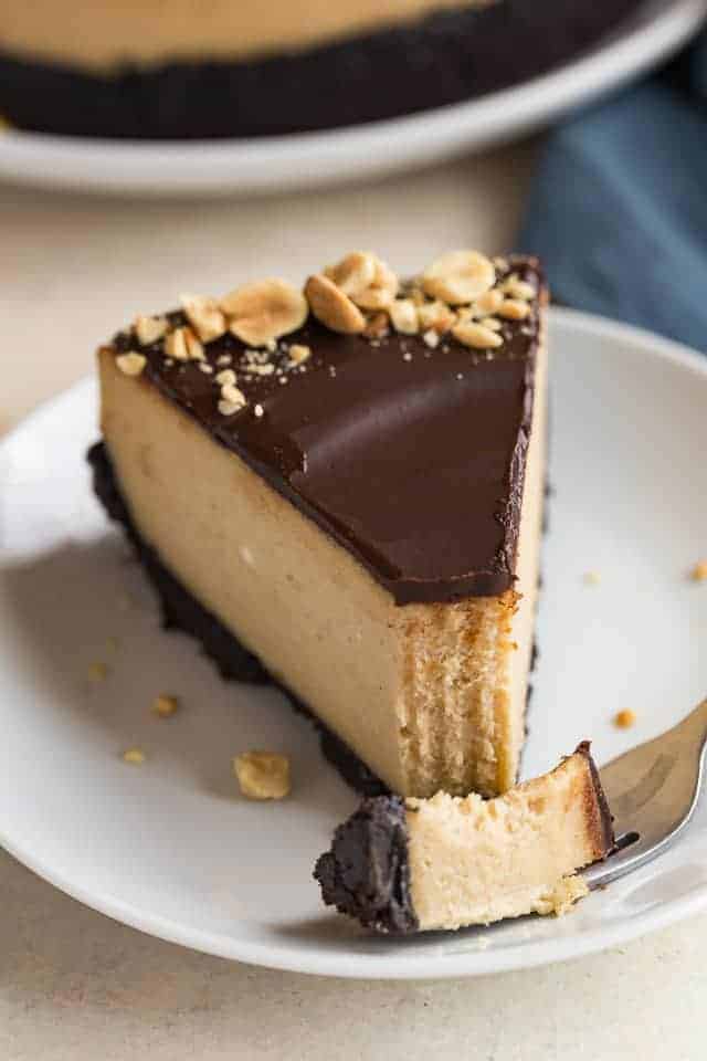 The creamy peanut butter filling calls for cream cheese, heavy cream, sugar, vanilla, salt, peanut butter, and eggs. Basically, your staple cheesecake ingredients with the addition of peanut butter.