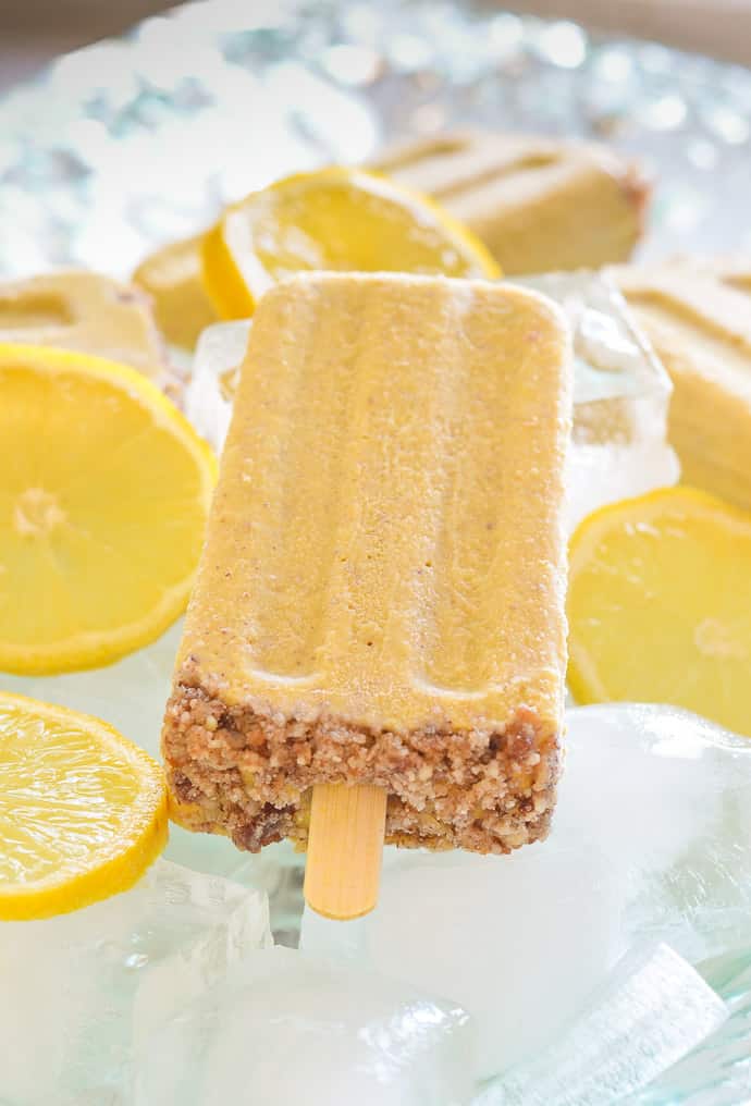 The best thing about these Ice-Pops is of course the taste, but also the ingredients. They are packed full of healthy things like fresh lemon, pecan nuts, mango, turmeric, apple cider vinegar and chickpeas. Yes, I even managed to disguise some chickpeas in ice-pops! Honestly though there is no way you would ever know. Just like you would have no clue that they are in my Vegan New York Cheesecake. Secretive little blighters they are! 😜