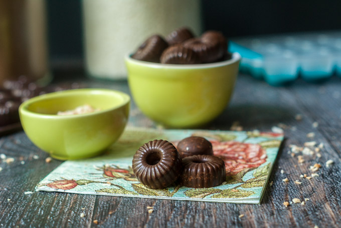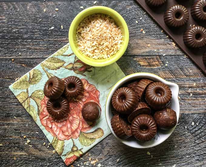I don’t know about you but I pretty much love chocolate. Somewhere over the years I’ve learned to appreciate dark chocolate and that is when my true love blossomed. There are many healthy things about chocolate but I eat it because it makes me happy. I’ve found a few dark chocolate bars that are lower in carbs than others but it’s much easier for me to make this coconut oil based chocolate. I make this ALL THE TIME and store it in the freezer. Then I just grab a piece when a chocolate craving hits. Adding the toasted coconut has been a new obsession with me, so I thought I’d share my low carb toasted coconut freezer candy with you today. As you can see the pieces are pretty small but there are only 2.2g net carbs in 10 pieces. You can’t beat that!